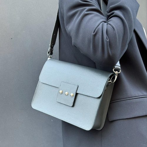 Blue Leather Shoulder Bag Elegant Crossbody Minimalist Women