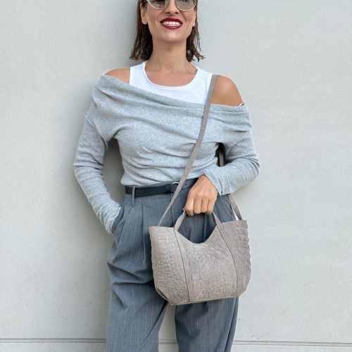 Gray Tote Bag Women Shoulder Full Grain Leather