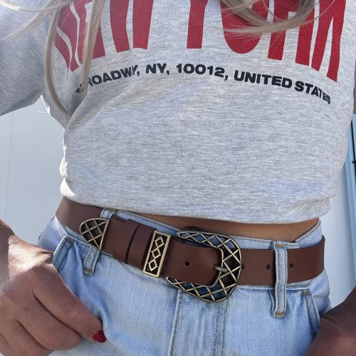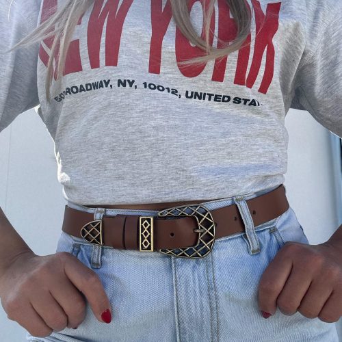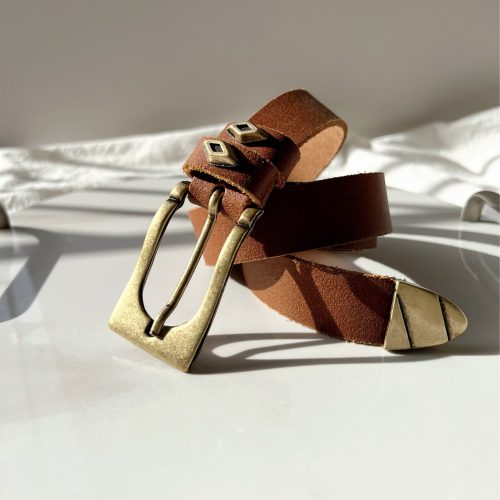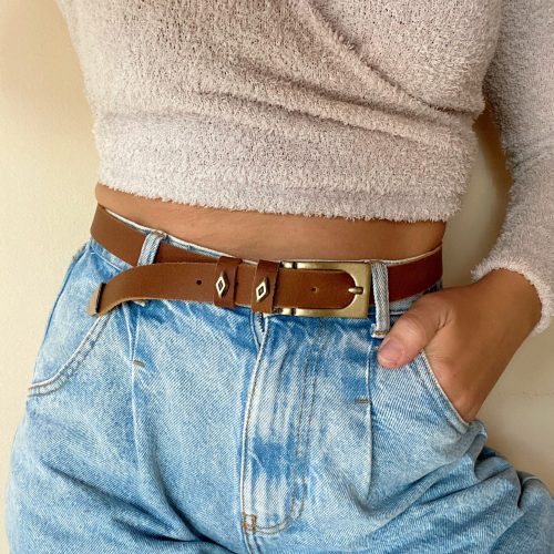 Handmade Brown Leather Belt Women’S Waist Boho Bronze