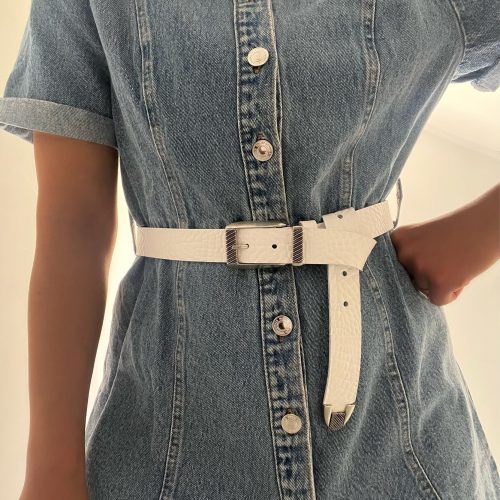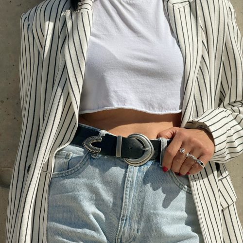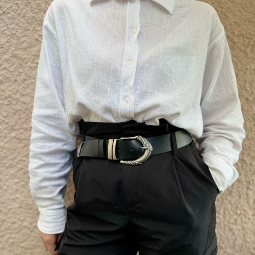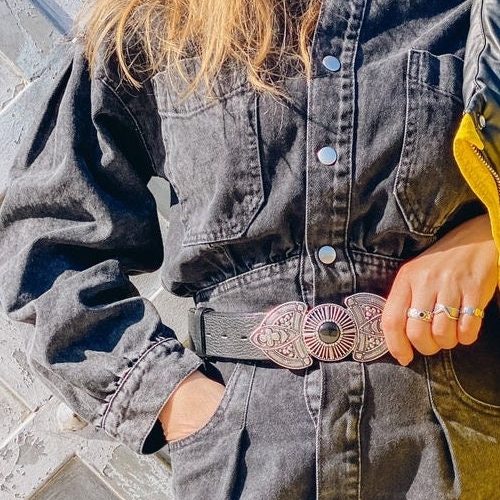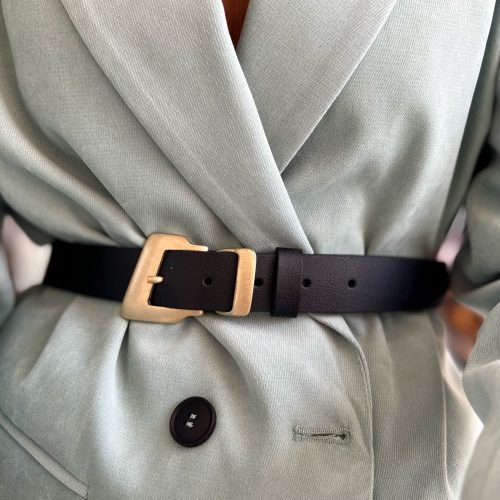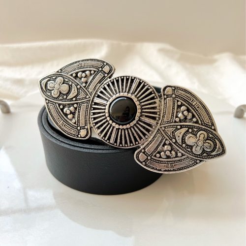 Handmade Black Leather Belt Women’S Silver Buckles Made