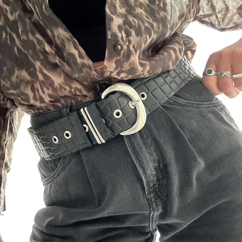 Black Leather Waist Belt Women Engraved Buckles Boho