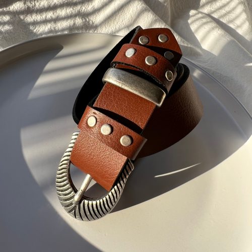 Brown Leather Belt Boho Buckles Studded Women’S Made