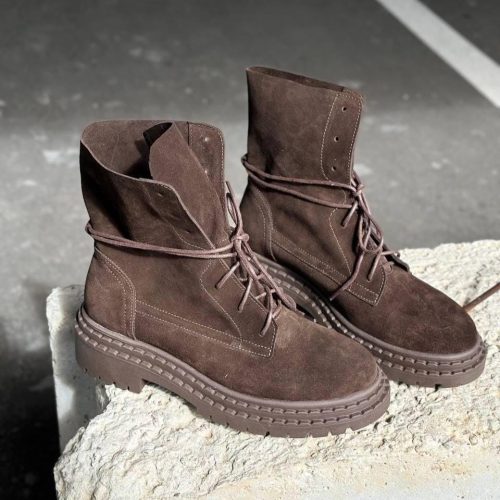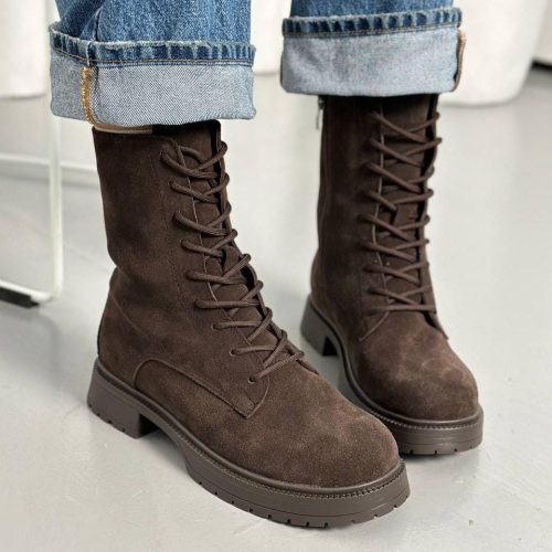Brown Suede Combat Boots For Women Chunky Sole