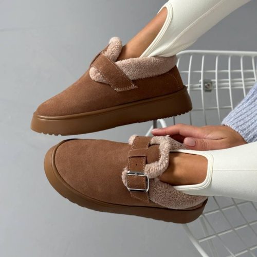 Women’S Suede Winter Slip On Boots Wool Lined