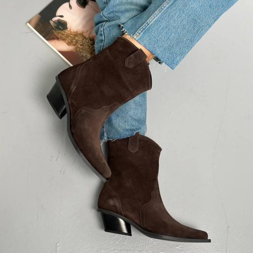Suede Western Boots Women’S Mid Calf Cowboy Booties