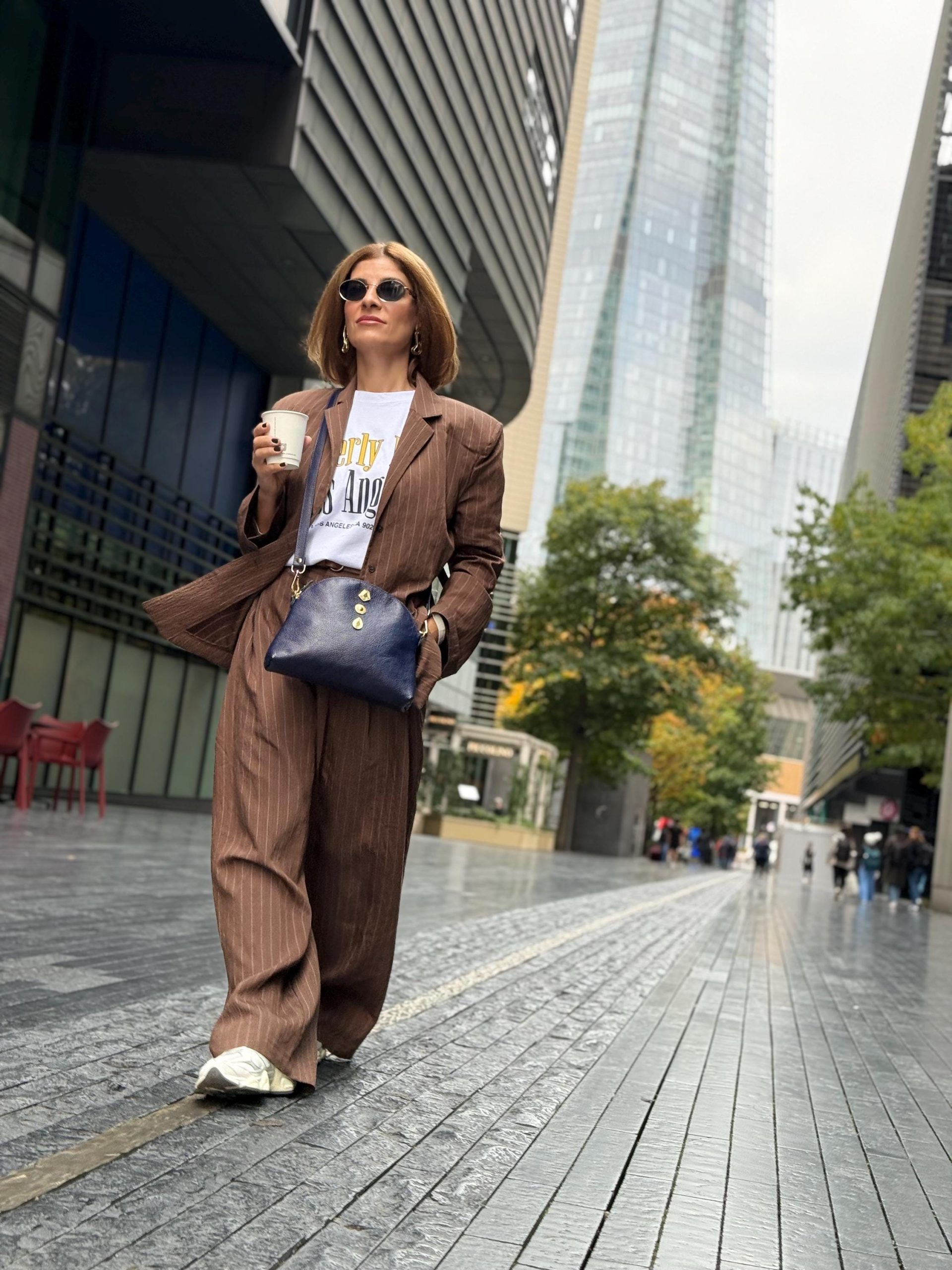 This handmade blue leather shoulder bag is crafted from premium full grain leather and decorated with gold zamak buckles. It features a large interior space, zipper closure, and removable adjustable strap. Elegant and minimal a timeless us design for everyday sophistication.