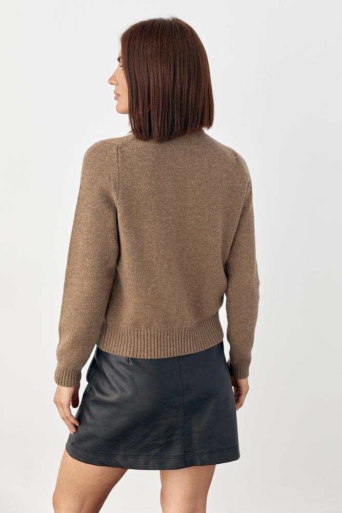 Fine wool texture, lightweight warmth, neat ribbed hems, and natural shell-tone buttons. A versatile essential for fall, winter, and early spring.