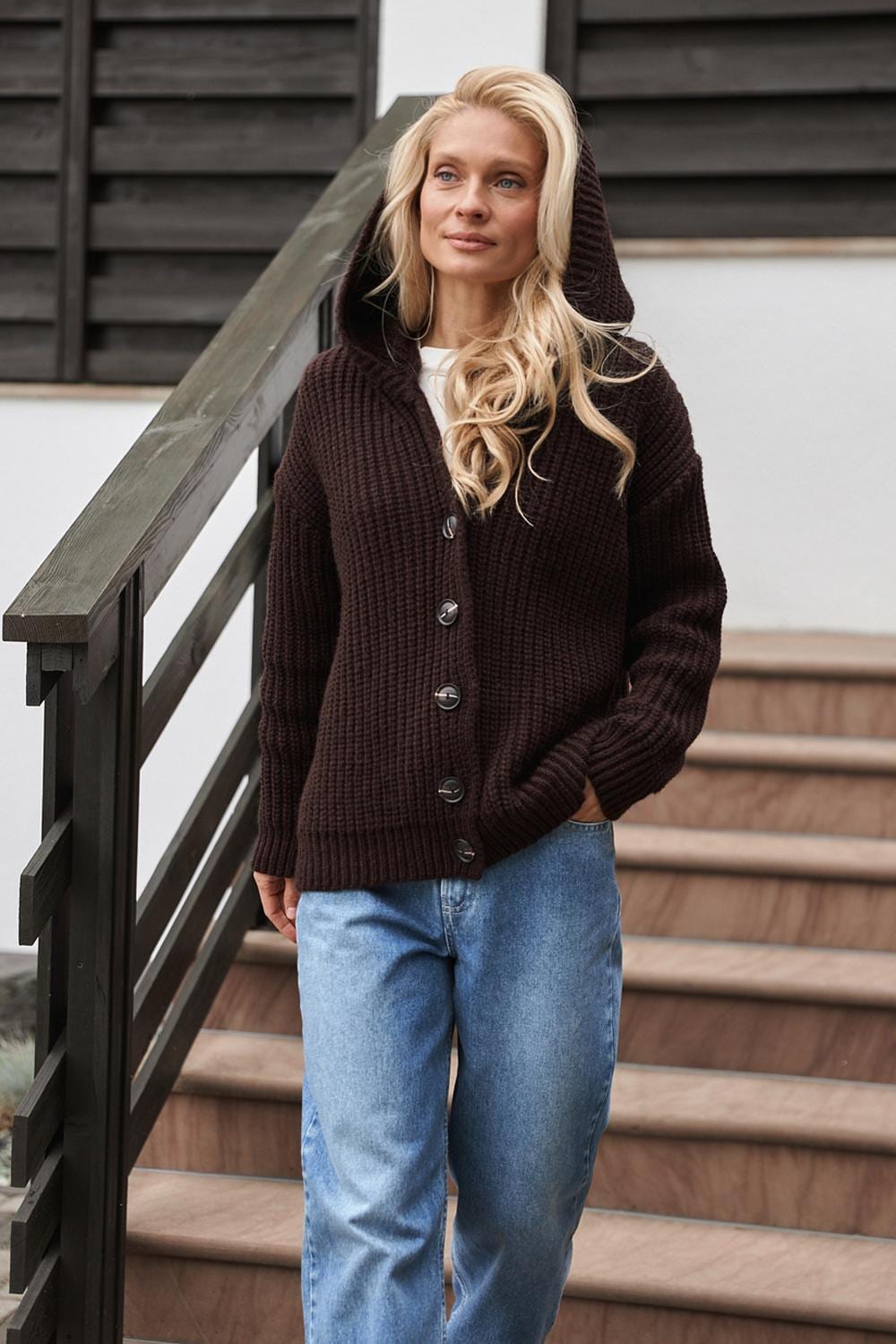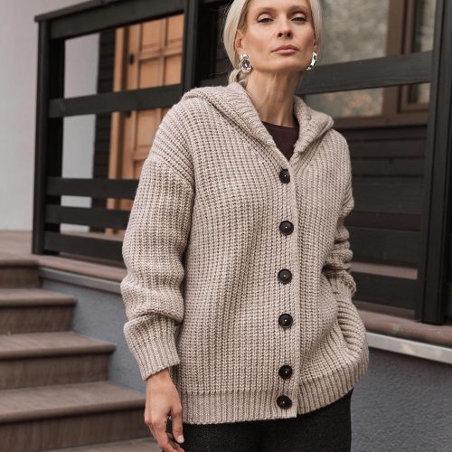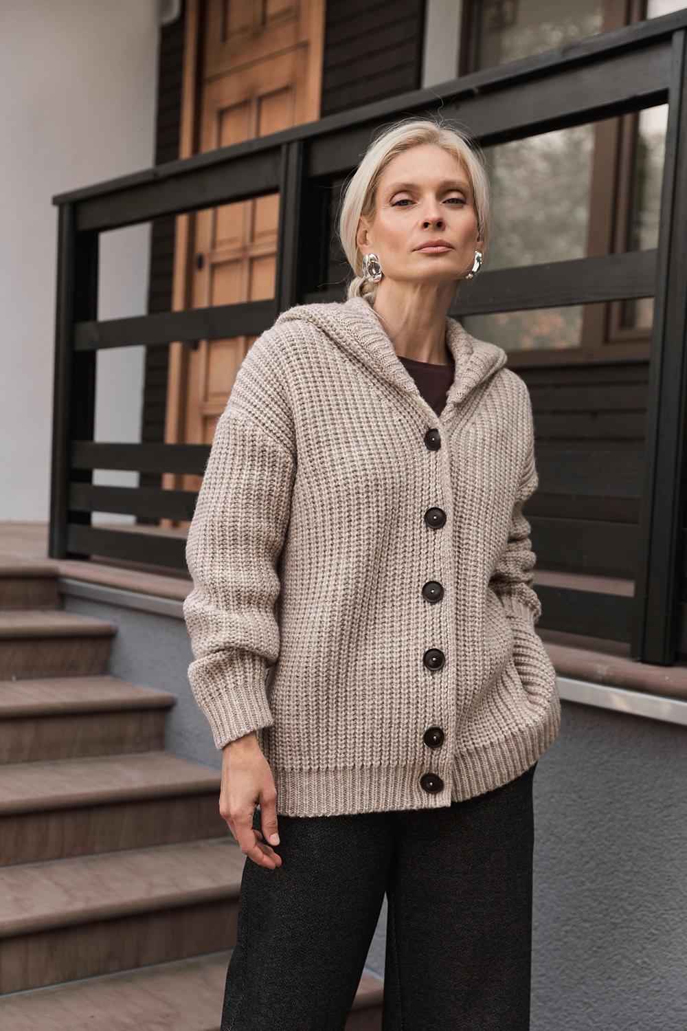 Chunky Knit Hooded Cardigan Wool Alpaca Winter Coat