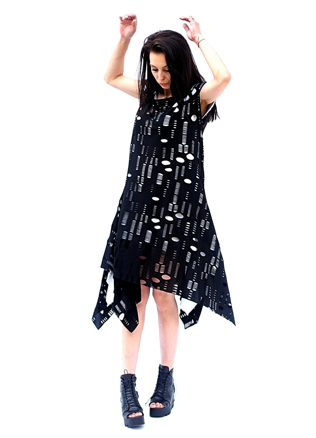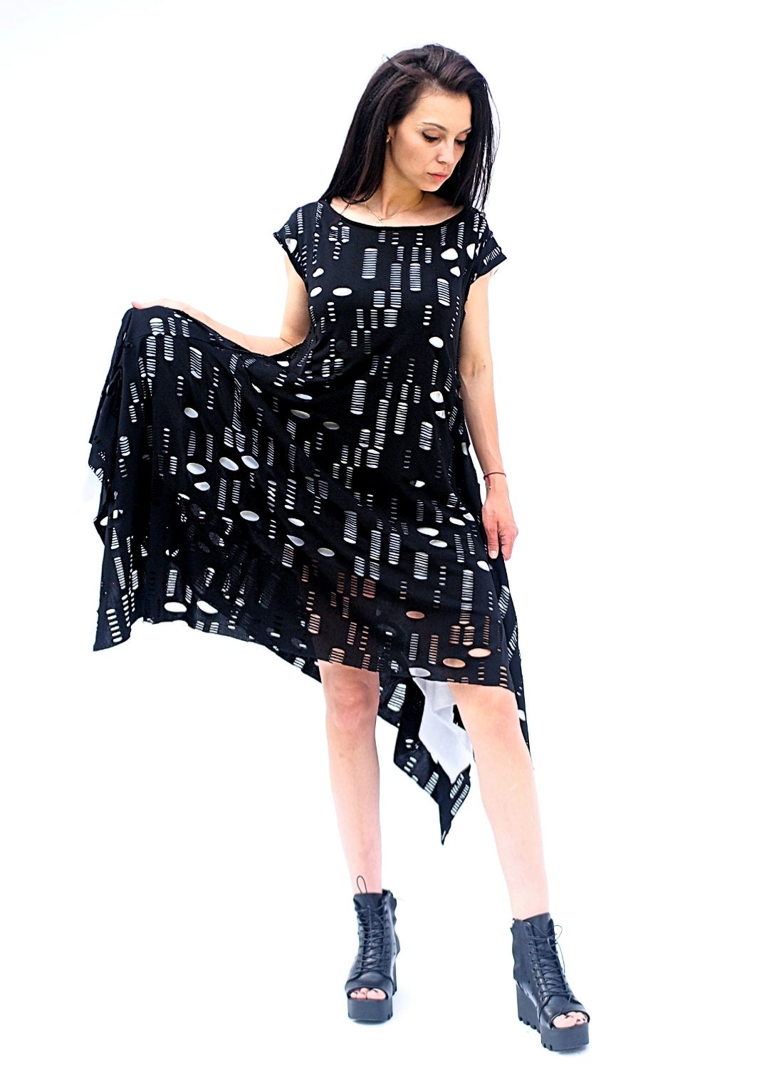 Long Asymmetric Women Dress Maxi Black Kaftan Loose