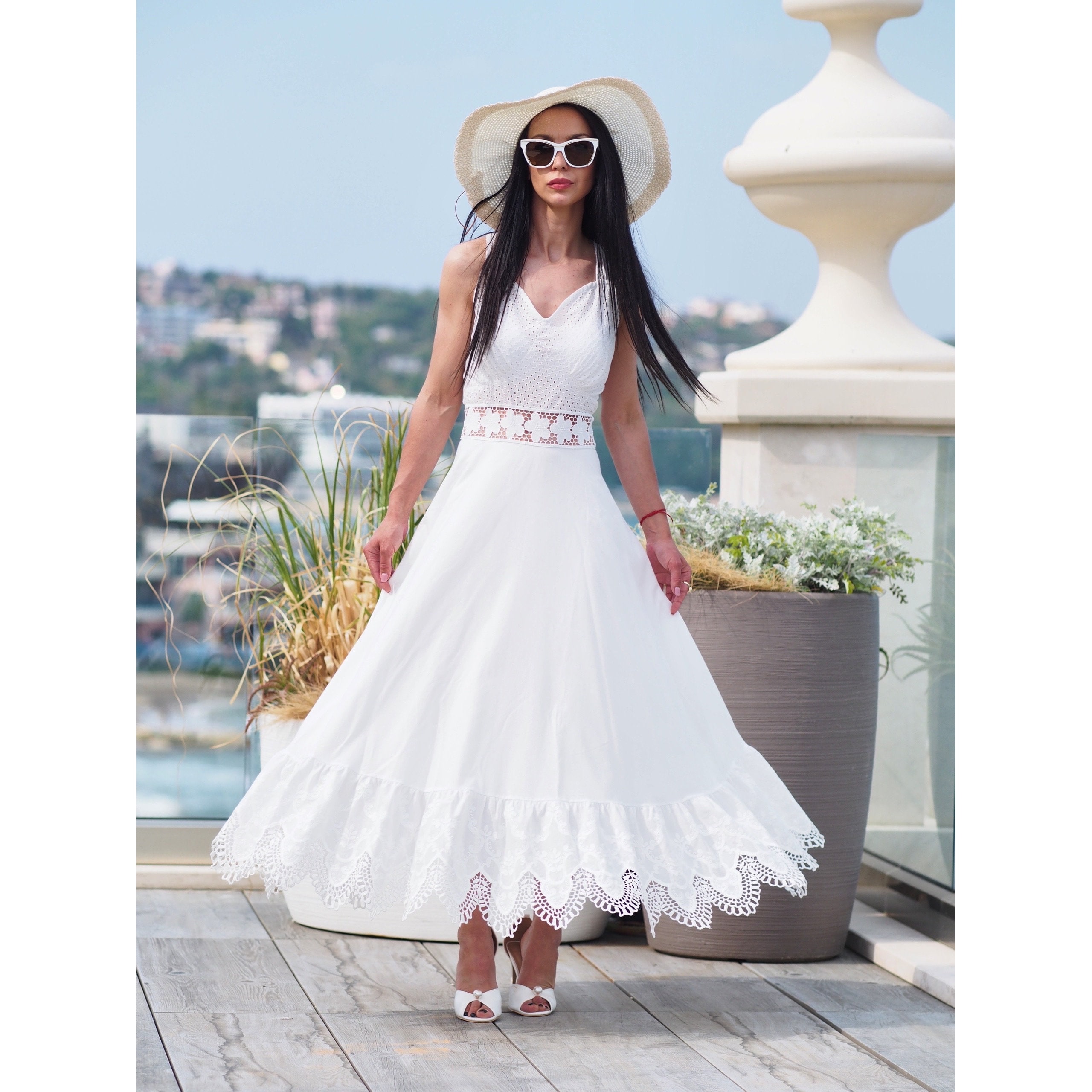 Indulge in the carefree spirit of summer with our White Summer Cotton Boho Dress for Women. This enchanting dress is designed to elevate your summer wardrobe, whether you’re attending a wedding, enjoying a beach vacation, or simply embracing the bohemian vibe on warm, sunny days.
