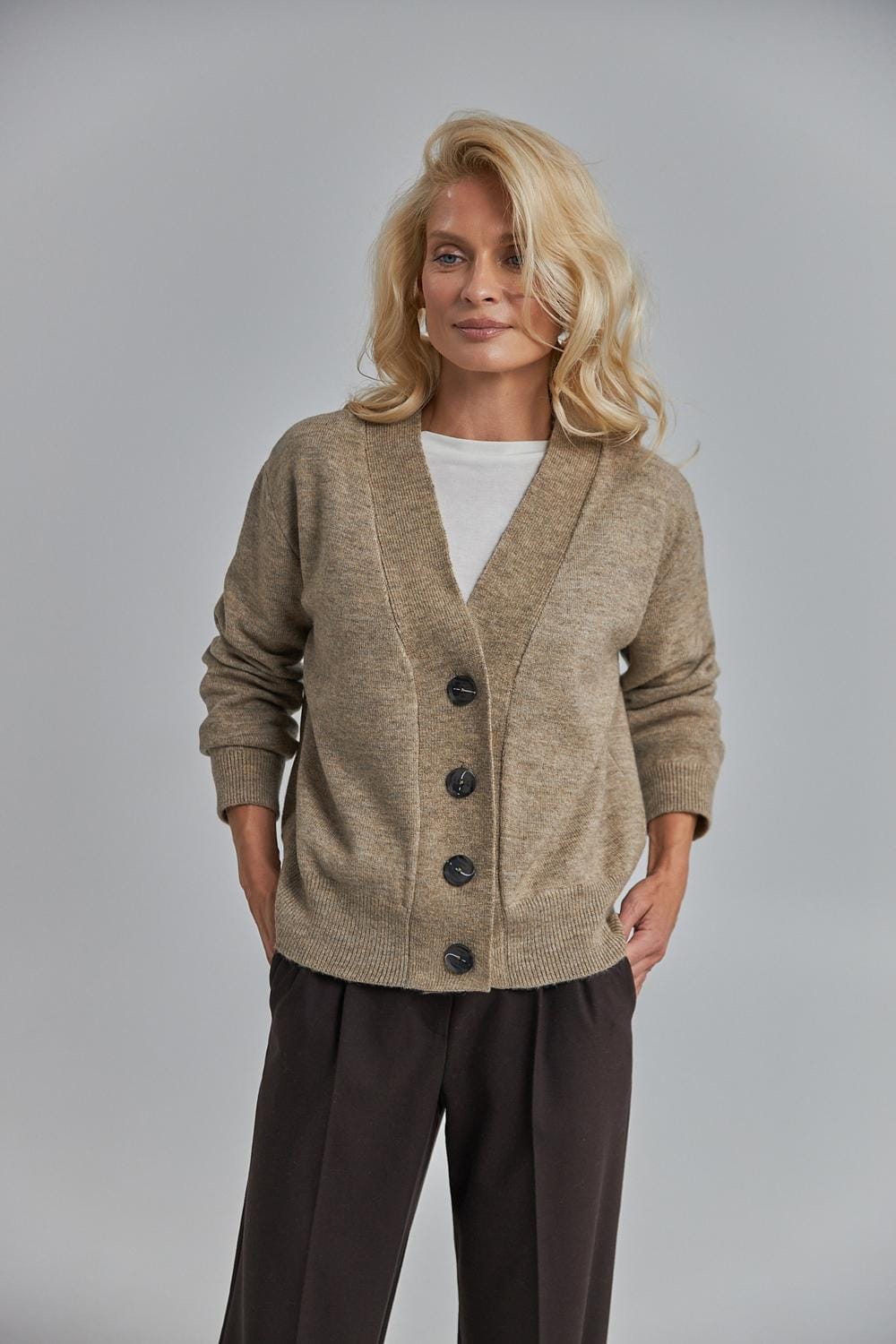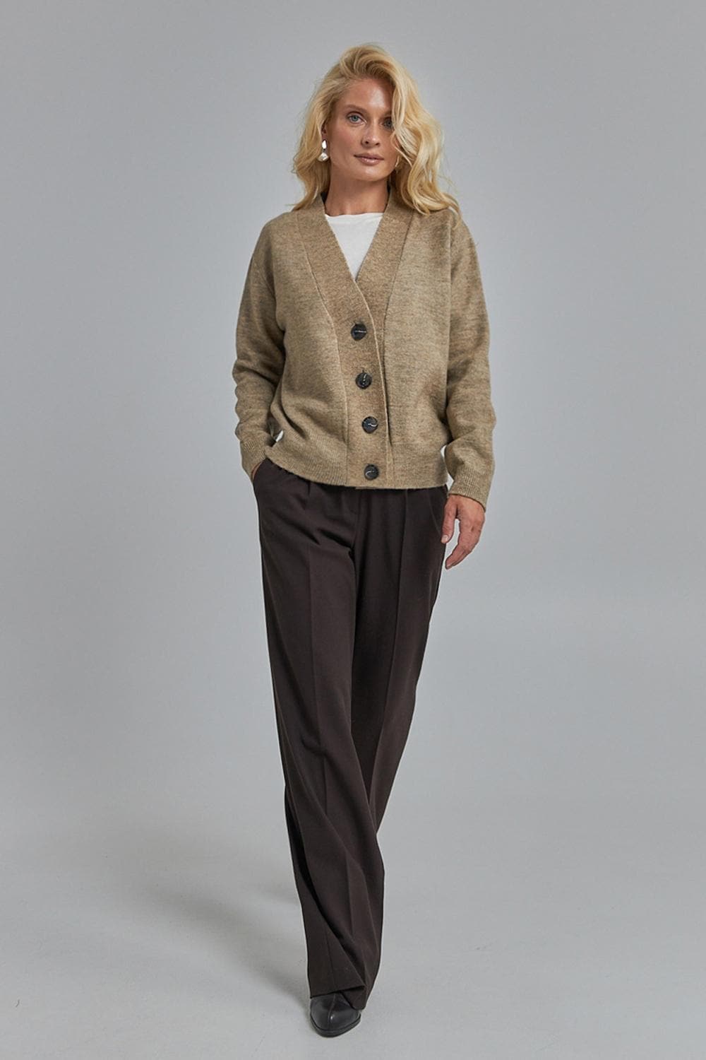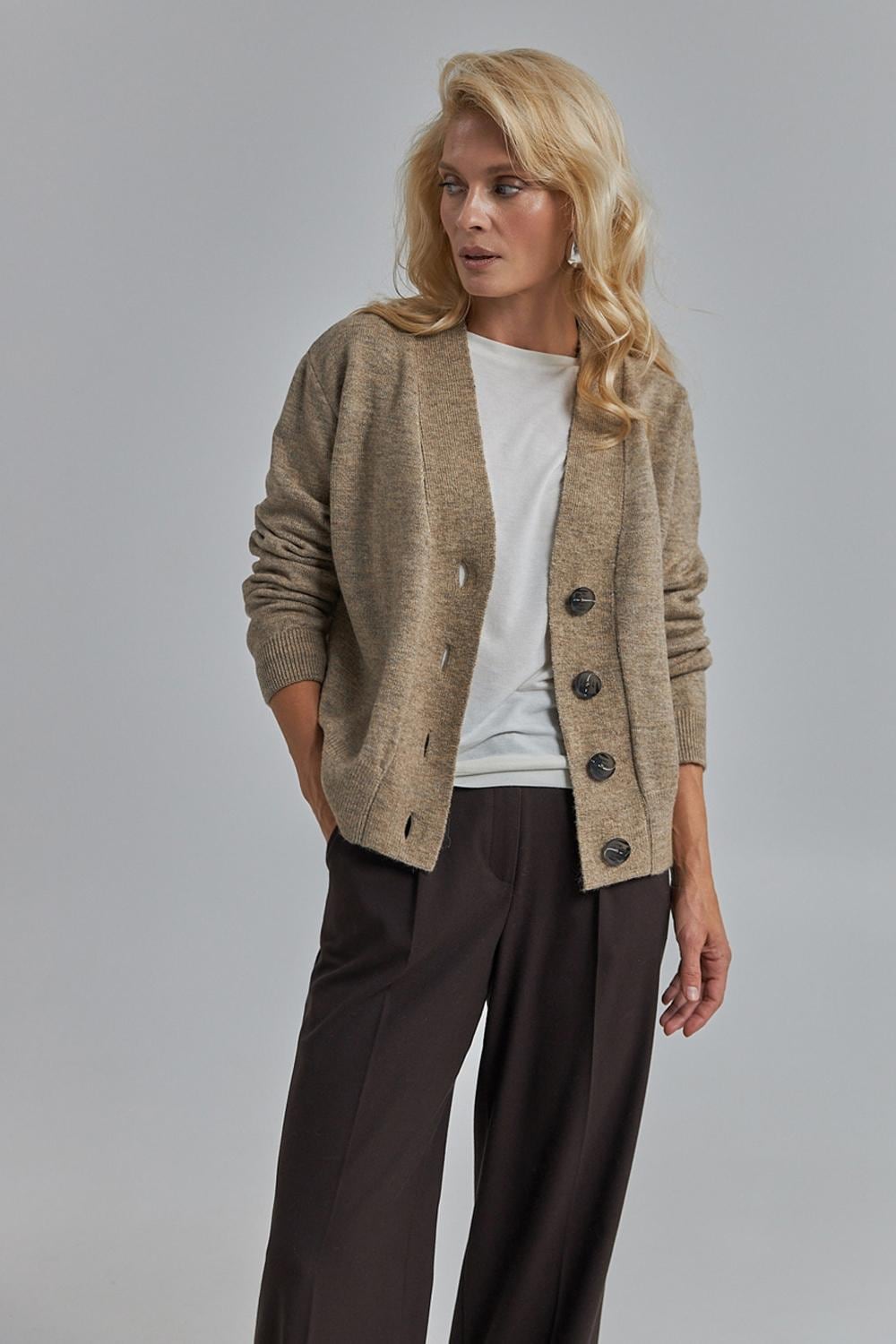 A timeless cardigan designed with clean lines and a soft drape. Crafted from premium merino wool and mohair, it balances warmth, breathability, and modern comfort.