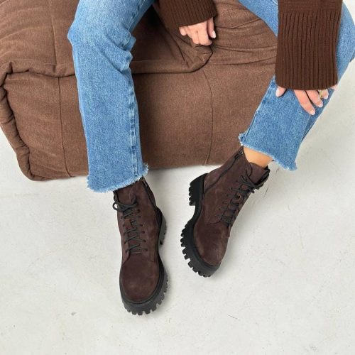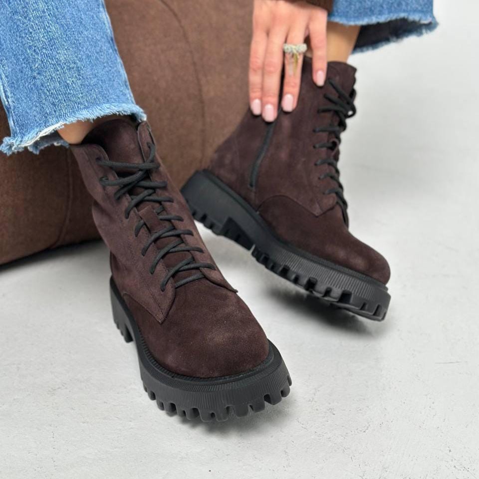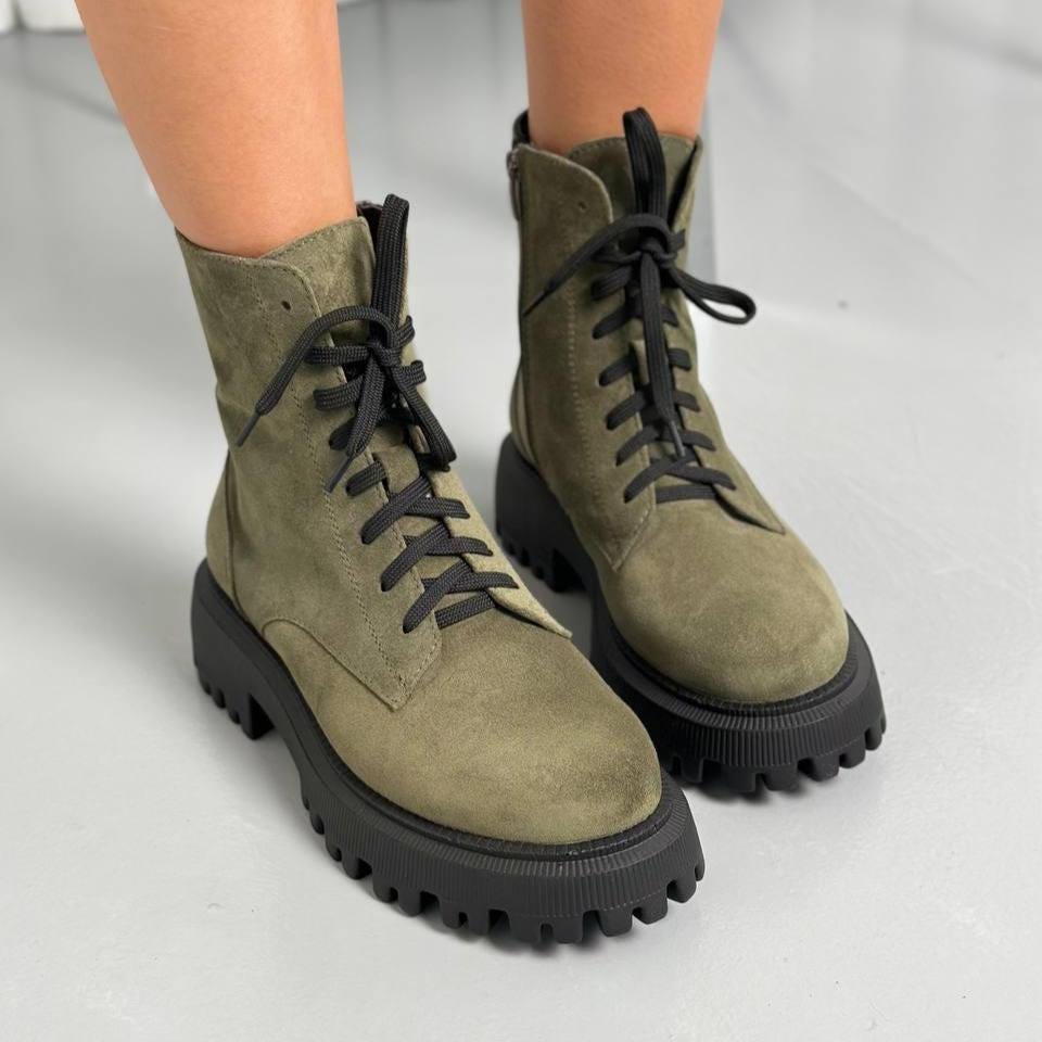 Wide Fit Suede Combat Boots Lace Up Ankle
