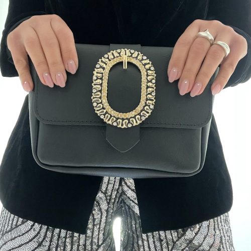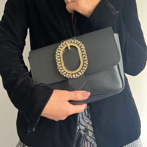 Black Leather Shoulder Bag Women Handbag Full Grain