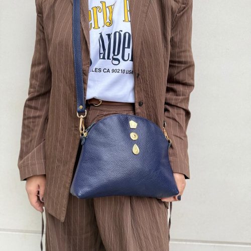 Blue Leather Shoulder Bag Elegant Crossbody Minimalist Women